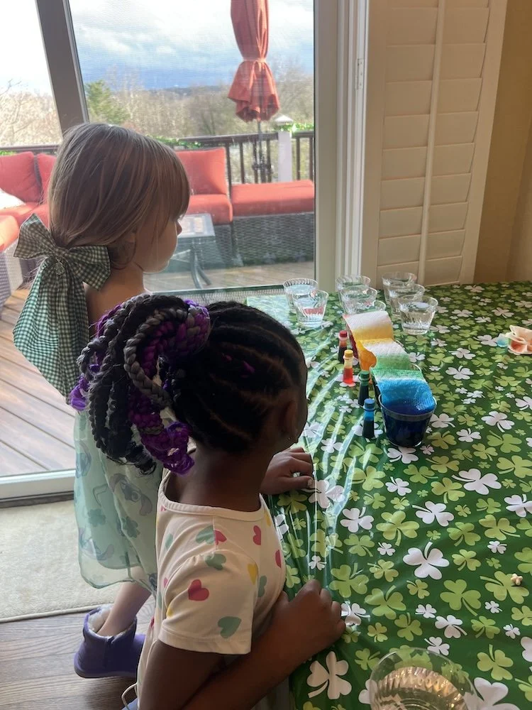 Join neighbors for a celebration of St. Patrick's Day. We will have a chocolate coin hunt, a leprechaun trap making table, and a science/coloring table where kids can make magic rainbows. A rainbow of veggies, cookies, Lucky Charms, and kid drinks will be available. Adults are encouraged to bring their own festive Irish beverages.